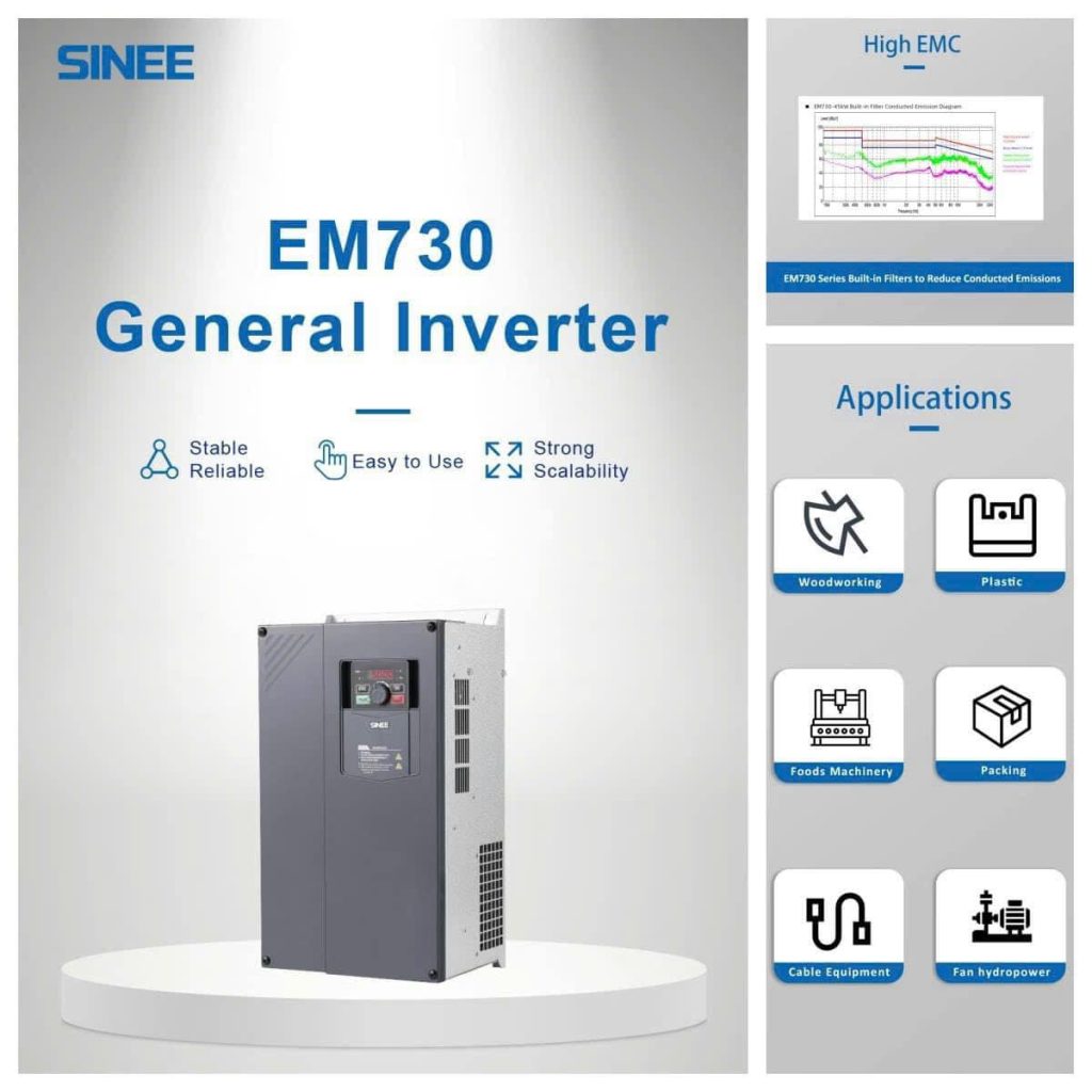 Tại thị trường Việt Nam, Sinee đã xây dựng hệ sinh thái dòng sản phẩm biến tần đa dạng: EM760, EM730, EM700, EM600, EM630, EM610, EM500, EM303B, EM330D, A90… đáp ứng nhiều ứng dụng từ tải nhẹ tới tải nặng.
